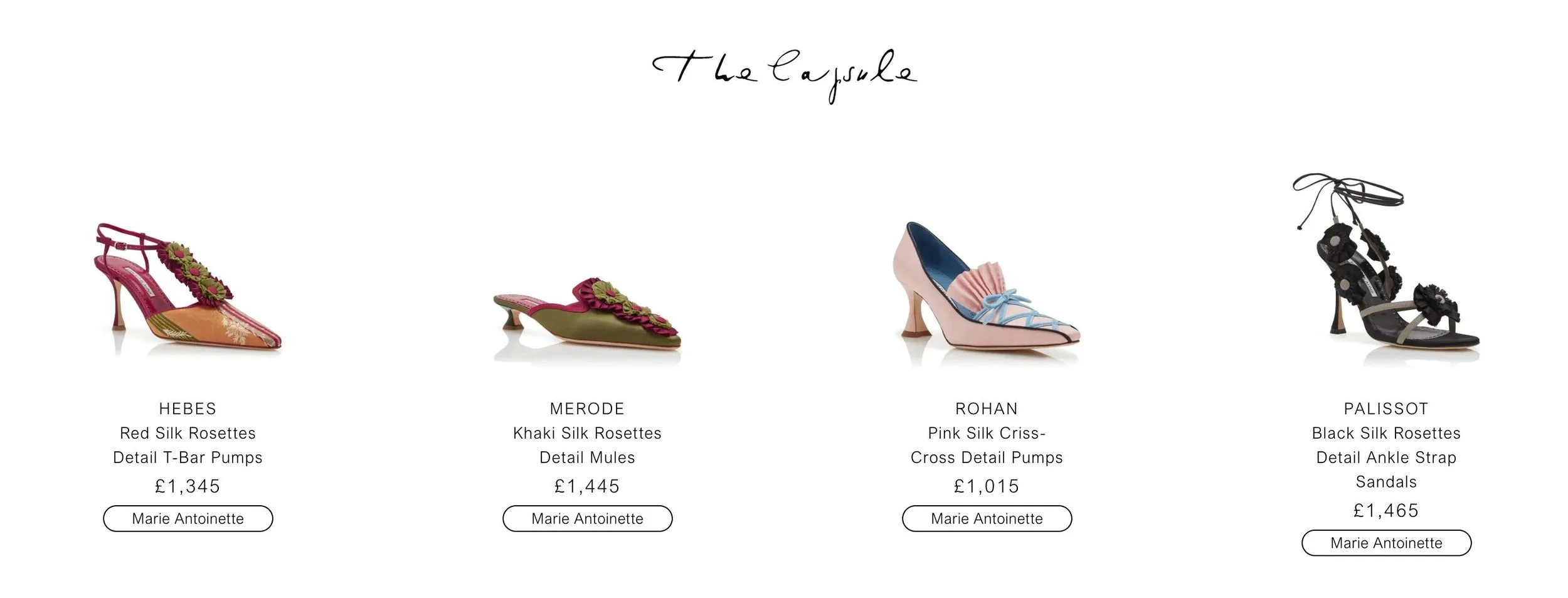 The Manolo Blahnik x Marie Antoinette capsule shoe collection.