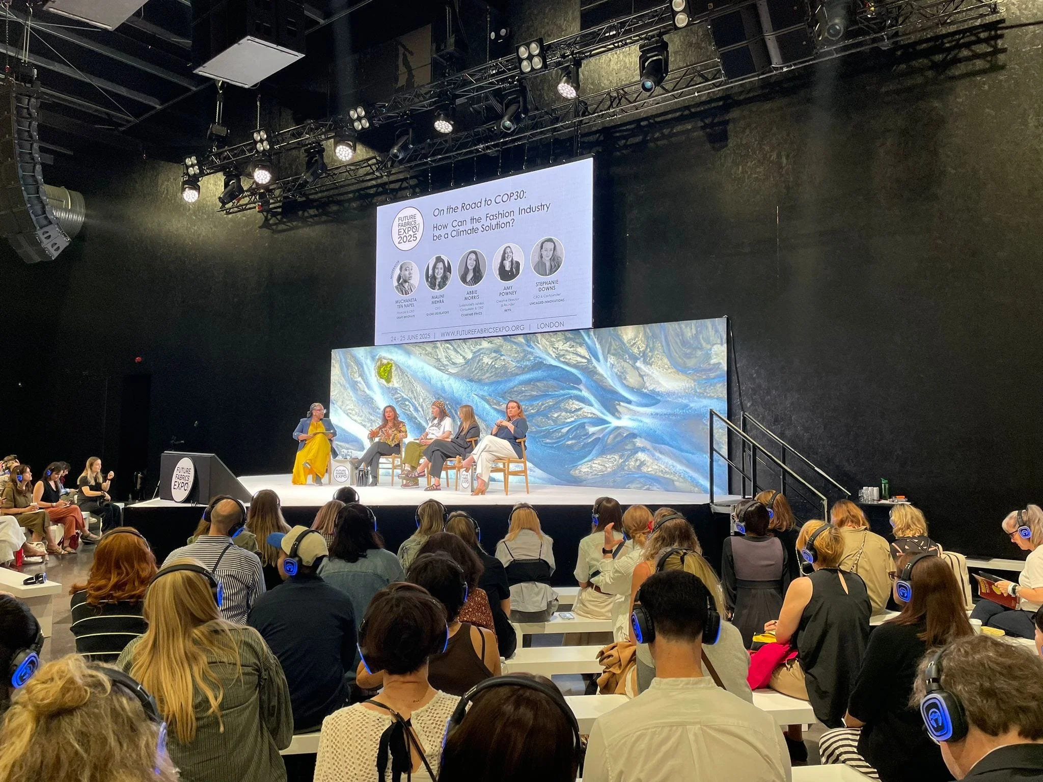 Firstly, we attended the Future Fabrics Expo (FFE), which is an eclectic combination of designers, industry professionals and innovation engineers to establish the future of the sustainable textiles industry. The two-day event covered a range of opportunities, from panel talks and discussions to table displays and demonstrations - FFE challenges current paradigms by bringing together a wide range of industry experts, creating a safe space for thoughts to be shared, analysed and criticised to establish the future of the fashion industry as we see it today.